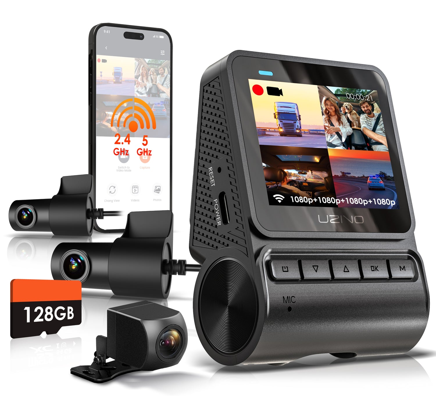 1080p Front, Rear, Cabin & Exterior Coverage | Wi-Fi | Optional GPS | 2" LCD | 170° Wide Angle | 24-Hour Parking Surveillance | 128GB Memory Card Included